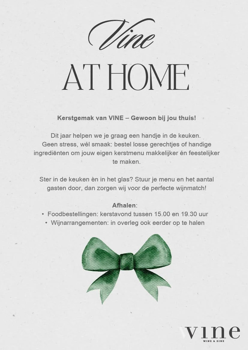 Gezellige avonden, mooie wijnen en alles goed geregeld. Op deze pagina bestel je jouw luxe wijnboxen, kerstgerechten voor thuis en, als je wilt, een compleet wijnarrangement op maat.